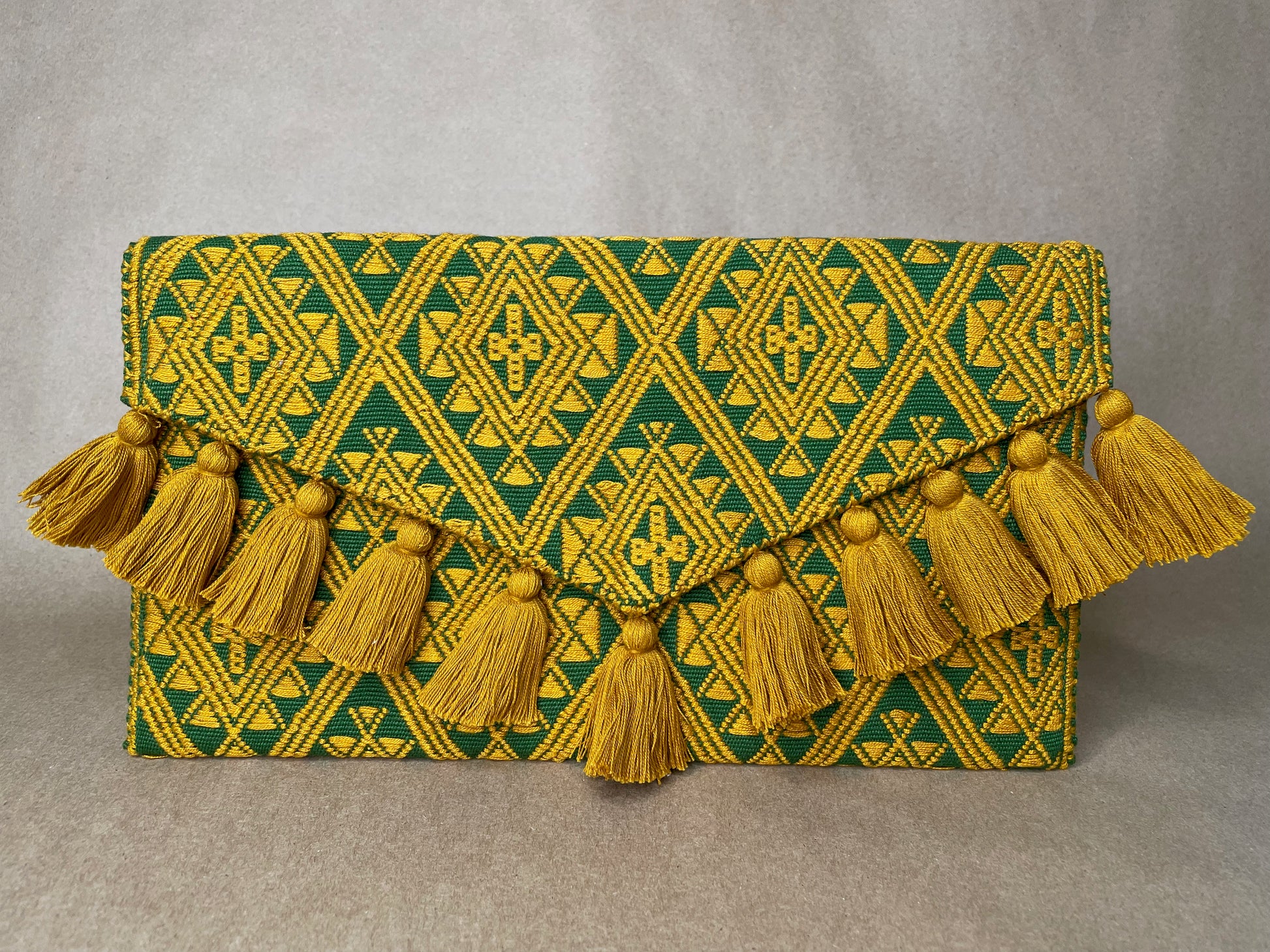 Our handmade Pom-Pom clutch is the perfect statement piece for your day to day outfit or to elevate your girls night out - date night outfit. This style is intricately made with cotton thread & fabric that is woven together to create different patterns. It has a magnetic clasp to ensure it remains closed. 11” Long 1” Wide 6” Tall.